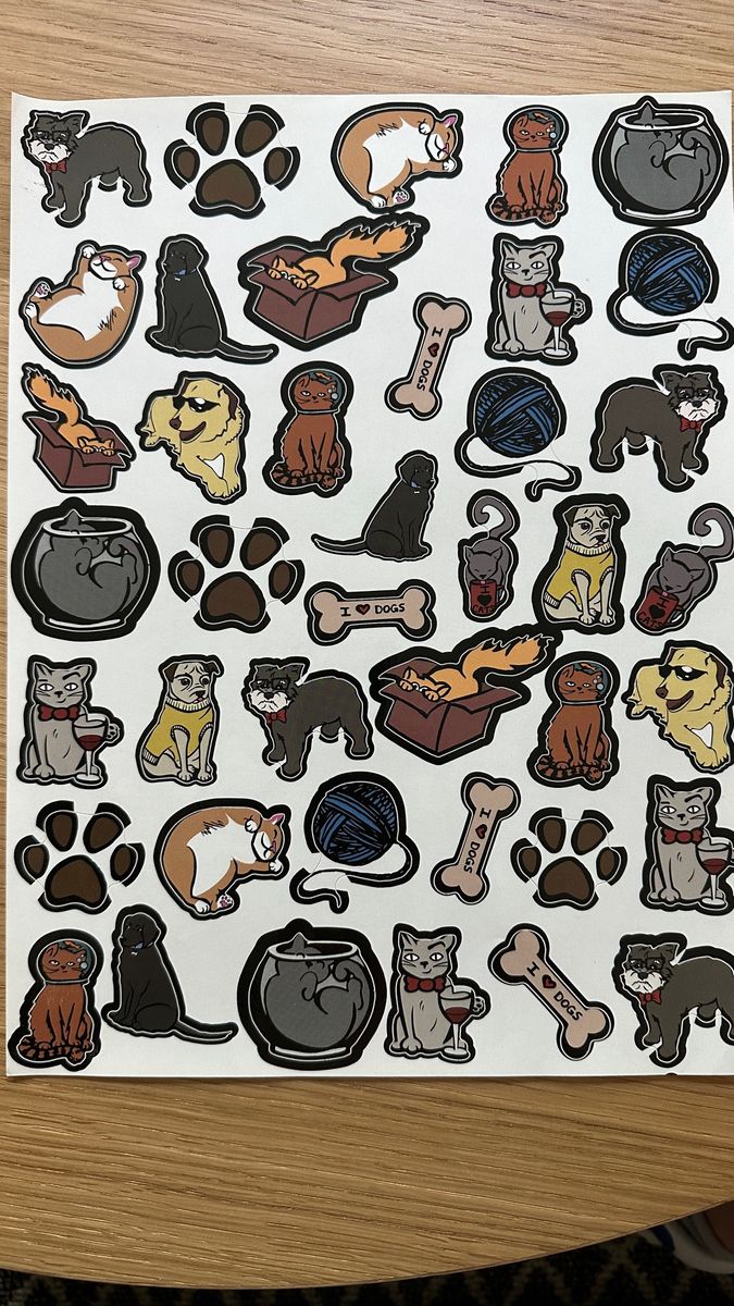 4" x 6" Sticker Sheet, fully customized on opaque matte white print media, gloss finish available as well. Kiss cut images to shape.