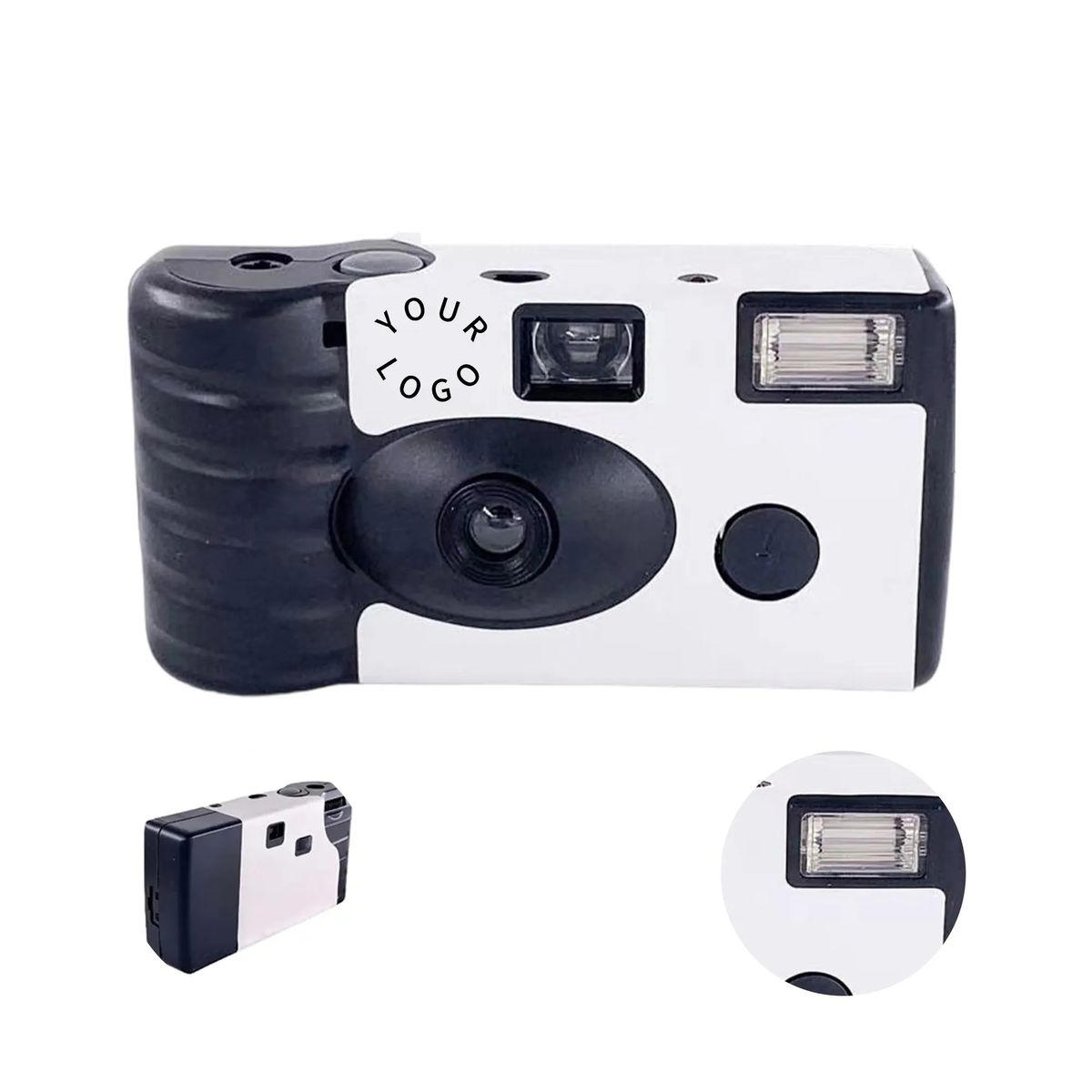 Capture instant memories with this lightweight disposable film camera. It includes a 28mm F9 focus-free lens and 12 exposures of 35mm film, powered by a single AA battery. Its compact 4.6 inch frame fits in pockets, perfect for weddings, graduations, or outdoor events. A built-in flash enhances image quality in darker environments. Full-color digital customization is available. Each camera is packed in a poly bag. Contact us for more details.